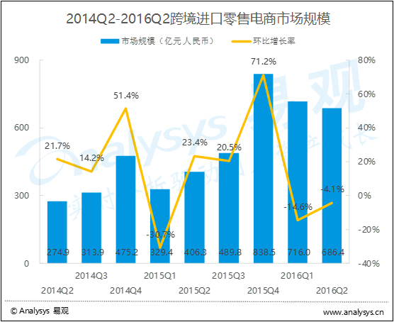 2016年第2季度中國跨境進(jìn)口零售電商市場規(guī)模統(tǒng)計(jì)分析