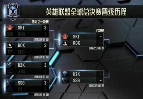 s6總決賽四分之一決賽在今日已經(jīng)全部結(jié)束,此次晉級(jí)四強(qiáng)的分別是來自LCK的三只隊(duì)伍,SKT、rox、ssg戰(zhàn)隊(duì)自己來自歐洲的H2K戰(zhàn)隊(duì),下面小編就為各位玩家們帶來lols6半決賽賽程一覽。