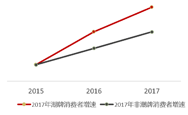 (4)從增長趨勢來看,自2015年起,潮牌服裝消費(fèi)者的增長趨勢明顯遠(yuǎn)超非潮牌,且增速差距愈發(fā)明顯。
