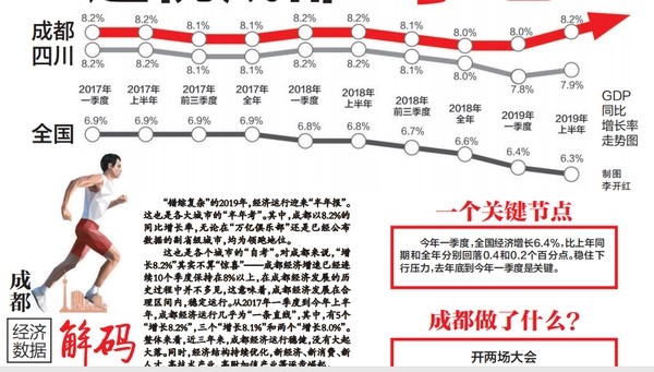 “錯綜復雜”的2019年,經(jīng)濟運行迎來“半年報”。這也是各大城市的“半年考”。其中,成都以8.2%的同比增長率,無論在“萬億俱樂部”還是已經(jīng)公布數(shù)據(jù)的副省級城市,均為領跑地位。